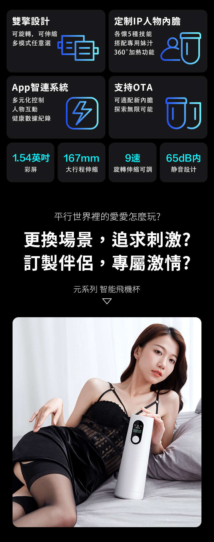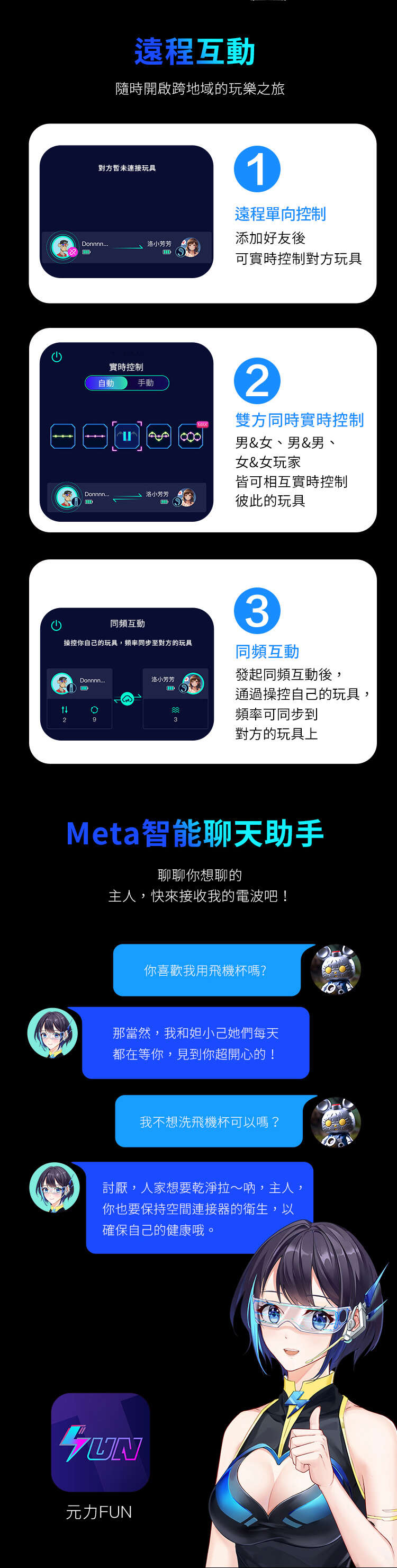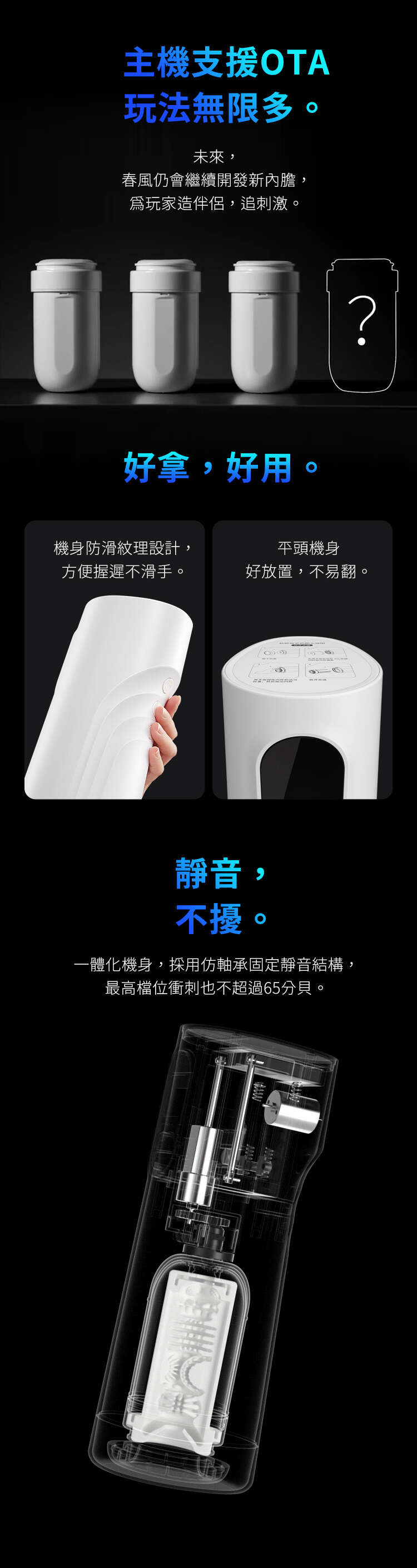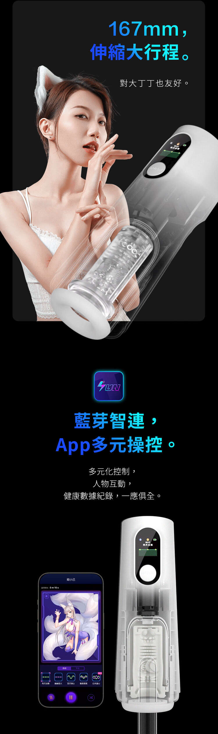 春風迄今最頂配的飛機杯硬件工業設計,搭載元力FUN App藍牙智聯交互系統,支持OTA升級,解鎖三大內膽IP元夢天使遙遙、妲小己、鈺環,一起戰鬥!還有隱藏角色Meta,給你最貼心的情感陪伴和健康建議,等你來撩 [ 心 ]