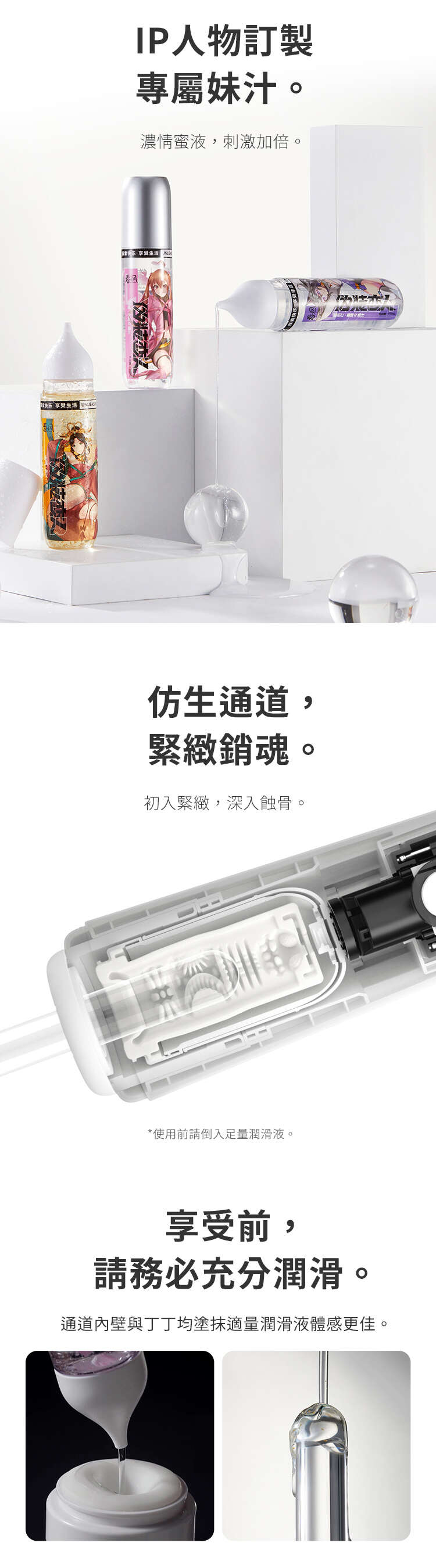飛機杯的每個內膽IP各懷技巧,自帶5種專屬的律動程序,讓她們的風情萬種不僅存在元宇宙中,更能具象化體現在使用過程中。此外,內膽還配有IP專屬的定制潤滑液,每款潤滑液都有其獨特的功能與設計,充分滿足了用戶的好奇心與新鮮感。在使用過程中,可以搭配專屬的“元力FUN”App 與 IP人物互動,在春風情趣元宇宙中享受私人定制的愉悅體驗。