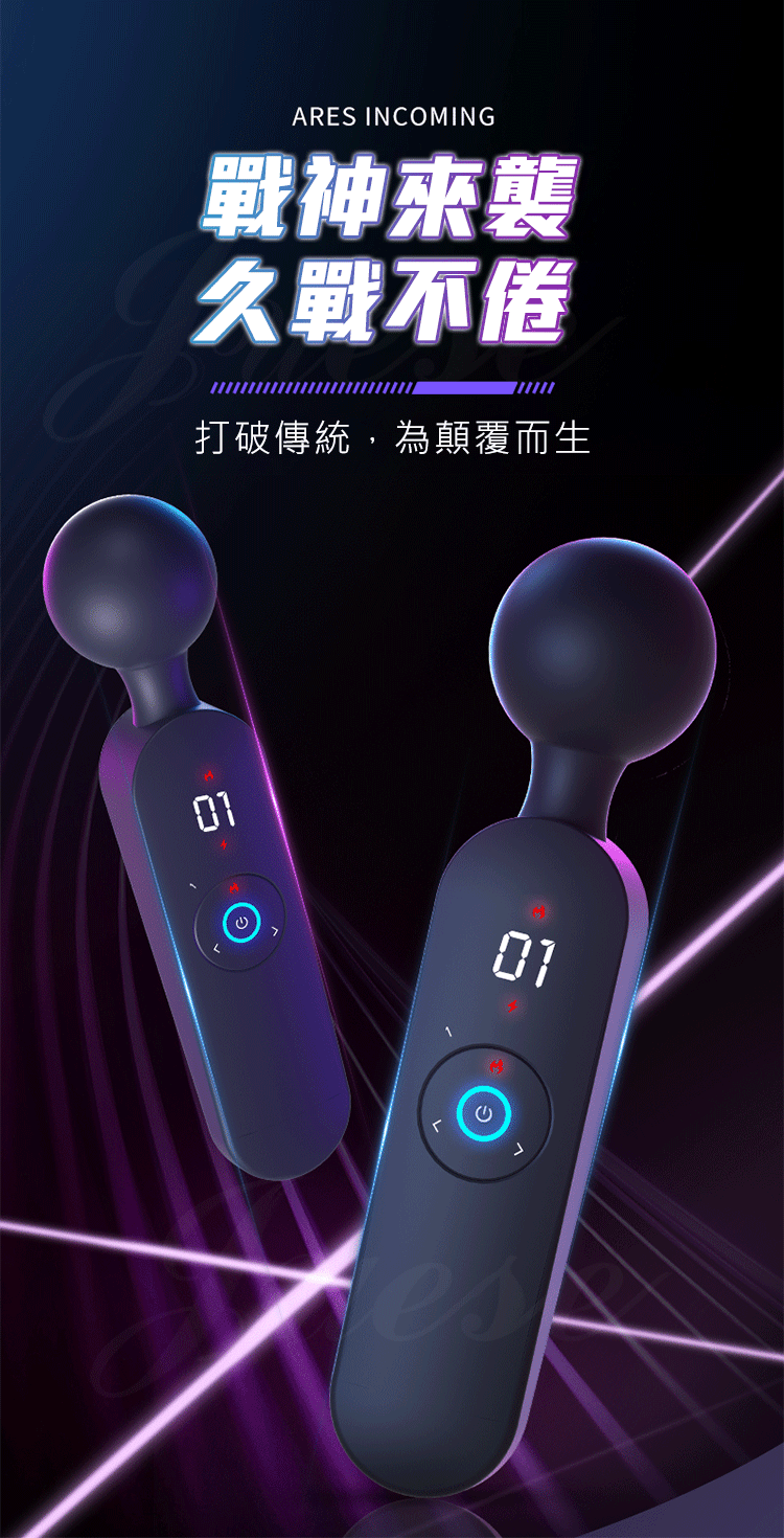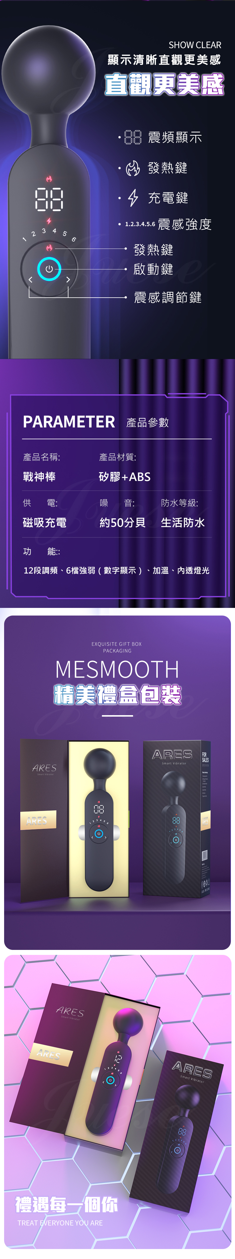 【戰神|6檔x12段變頻液晶顯示加熱恆溫USB充電震動按摩棒】