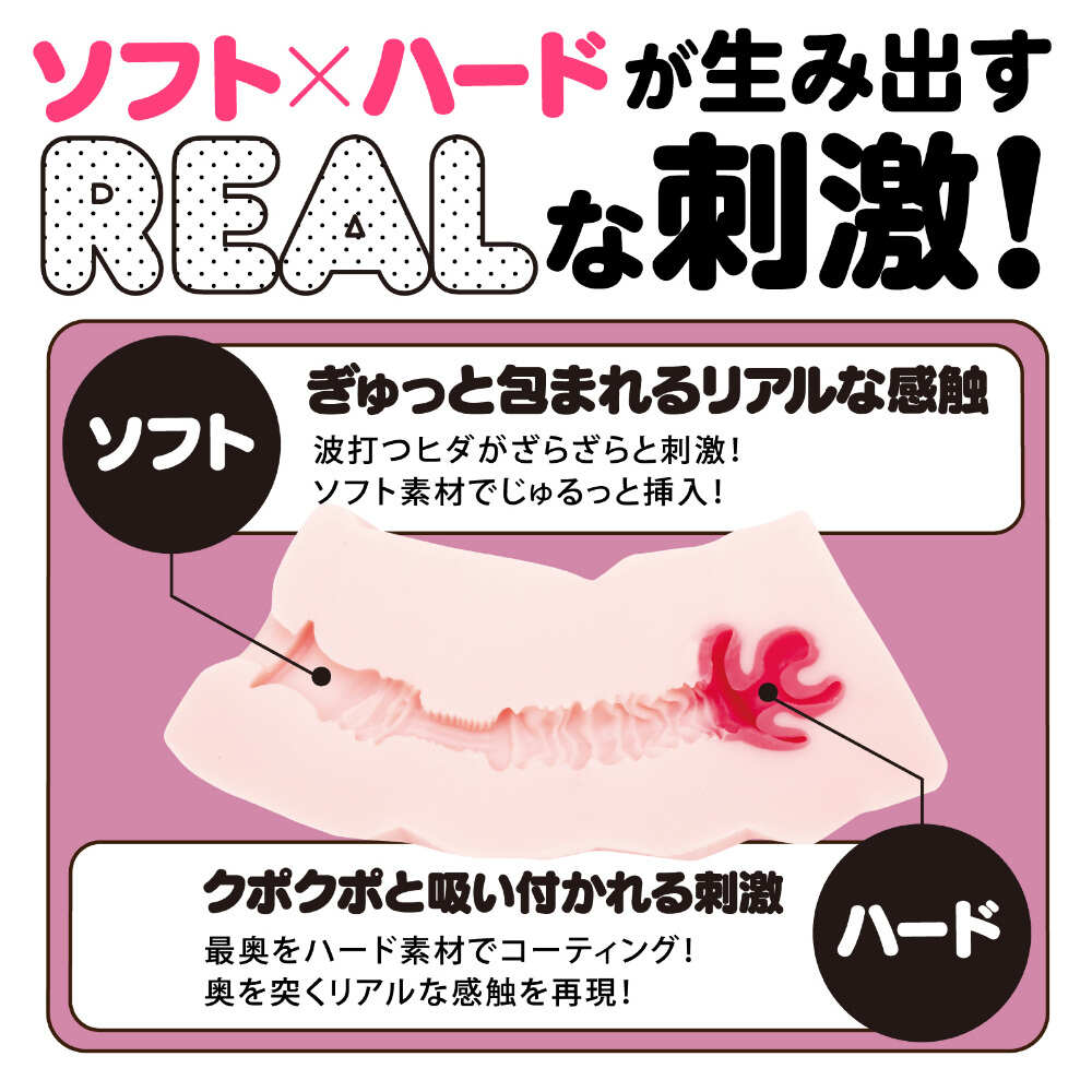 這次我們再現了真實的觸感!整體保持柔軟感的同時,最深處用硬質材料包裹,您可以享受由不同硬度的材質帶來的各種刺激。