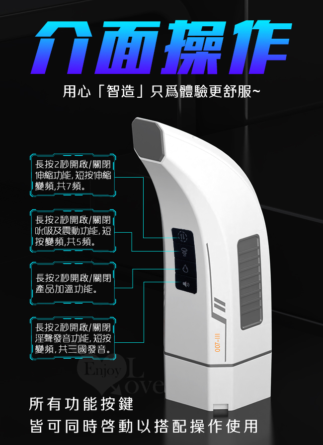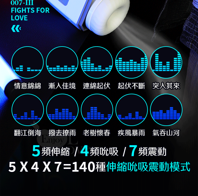 🎛️ 擁有5頻伸縮、4頻吸吮、7頻震動,組合出高達140種模式,快感隨心所欲。