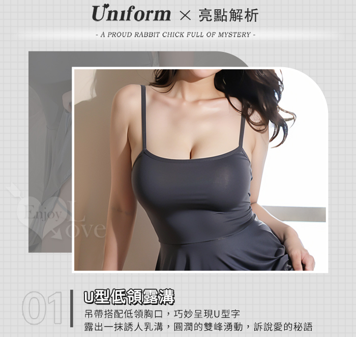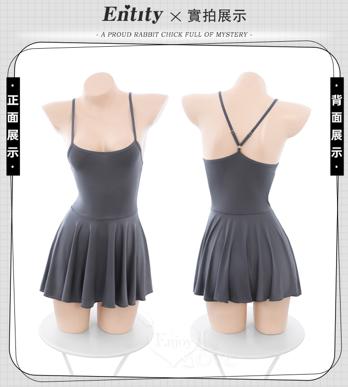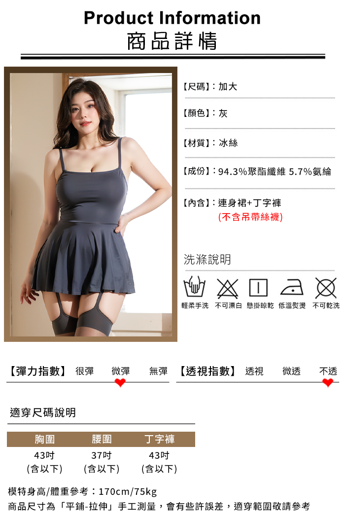 【棉花糖女孩】大尺碼情趣睡衣!冰絲V字可調細肩低領簡約性感連身裙兩件組