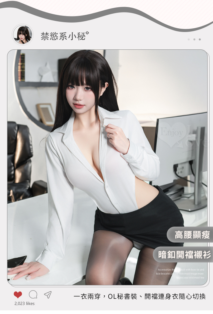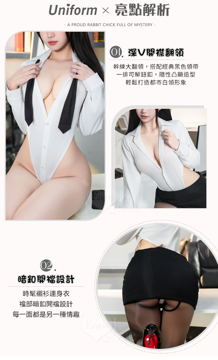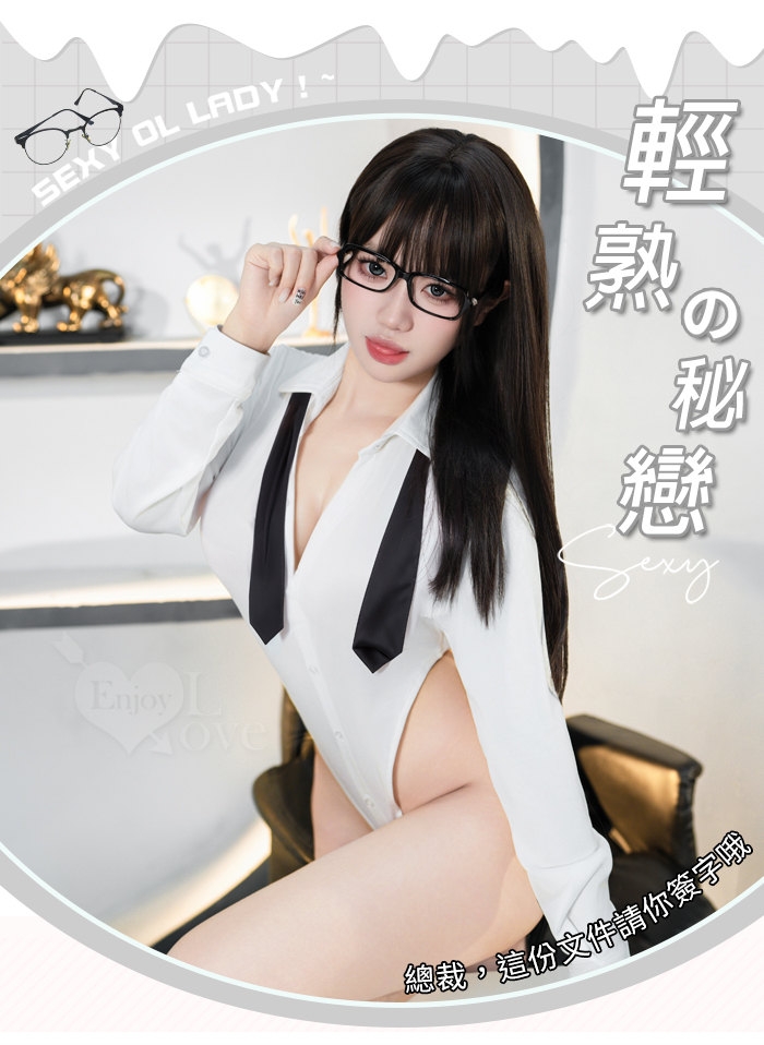 秘書角色扮演服!心機嫵媚V領排釦可開襠裸腰三件組