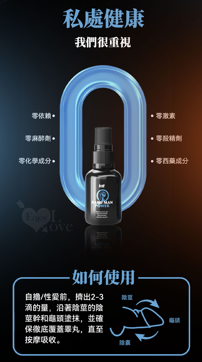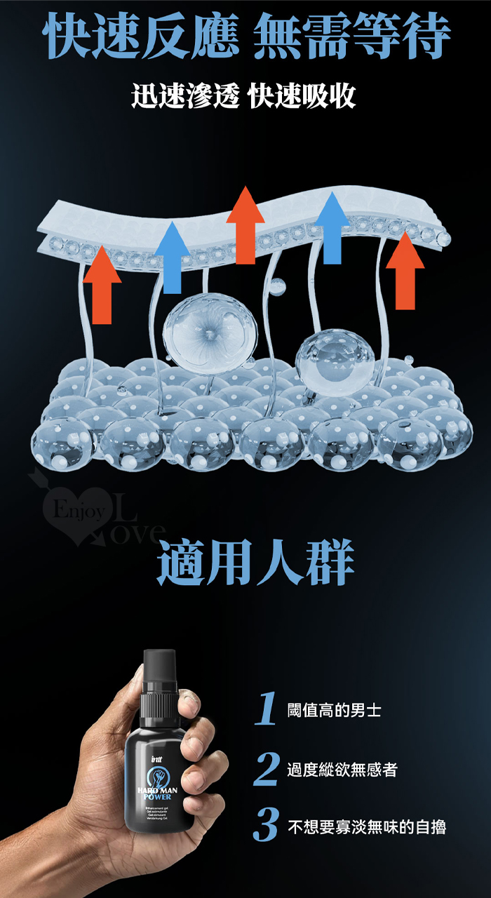 專為男性設計的興奮型凝膠,塗抹後可促進局部血液循環、產生溫熱刺激,