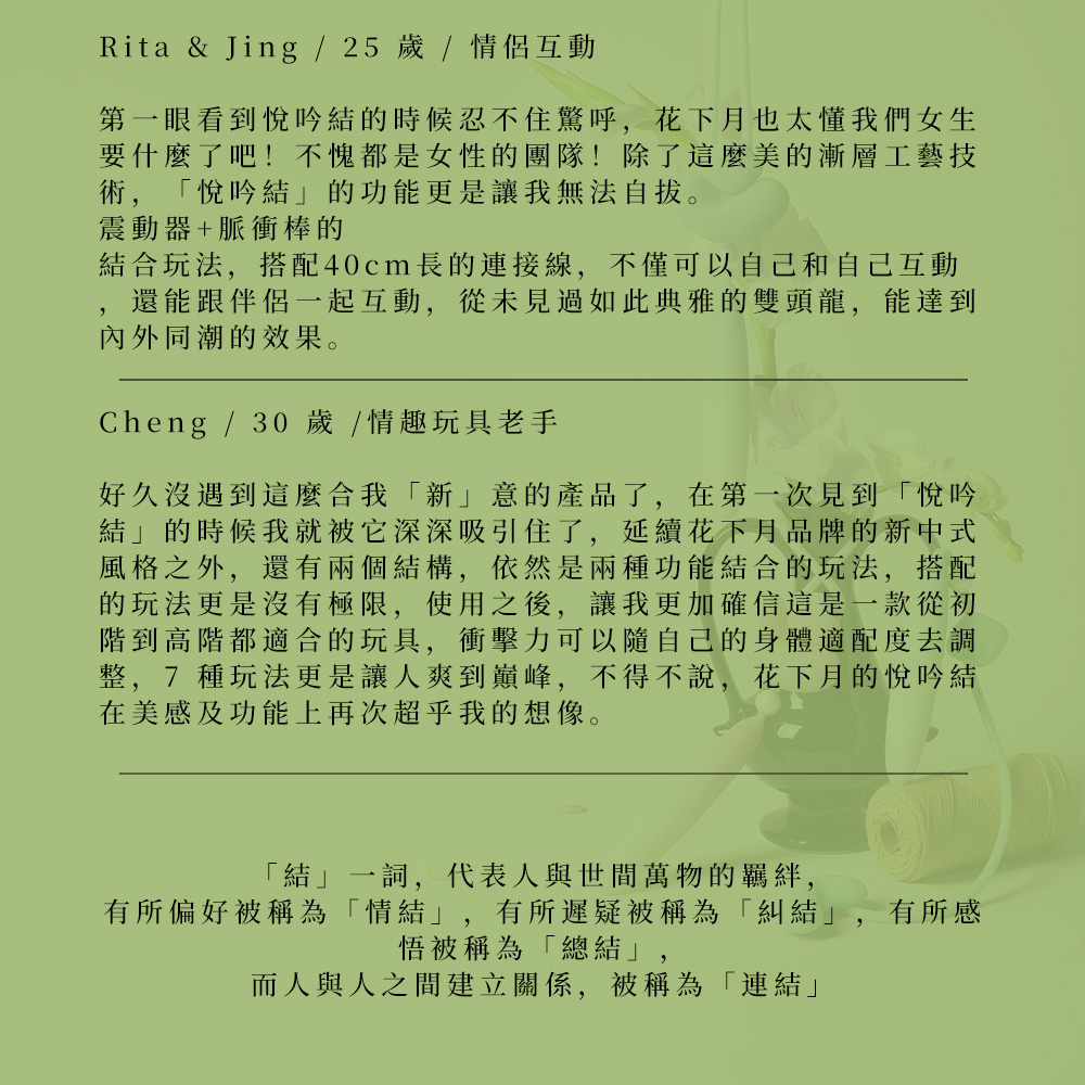 享受屋內,暗香盈袖,紅燭昏帳的「悅吟結」