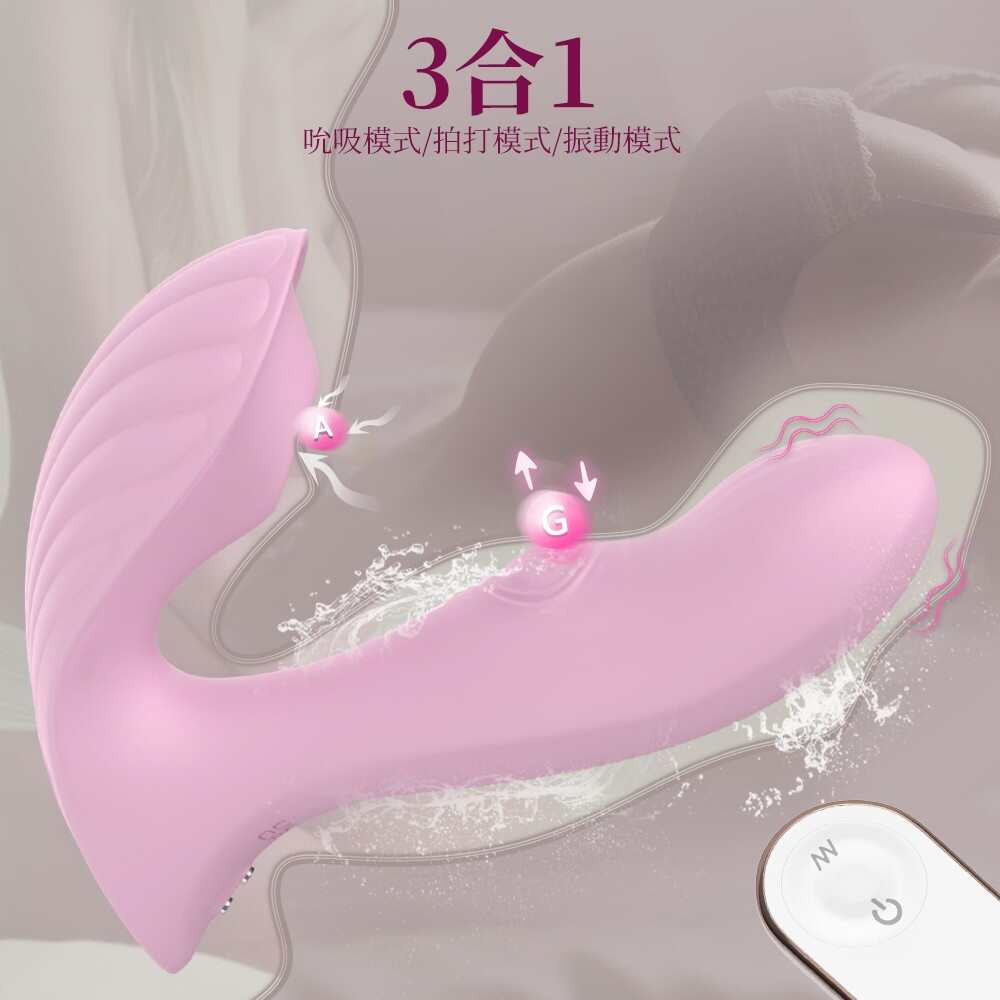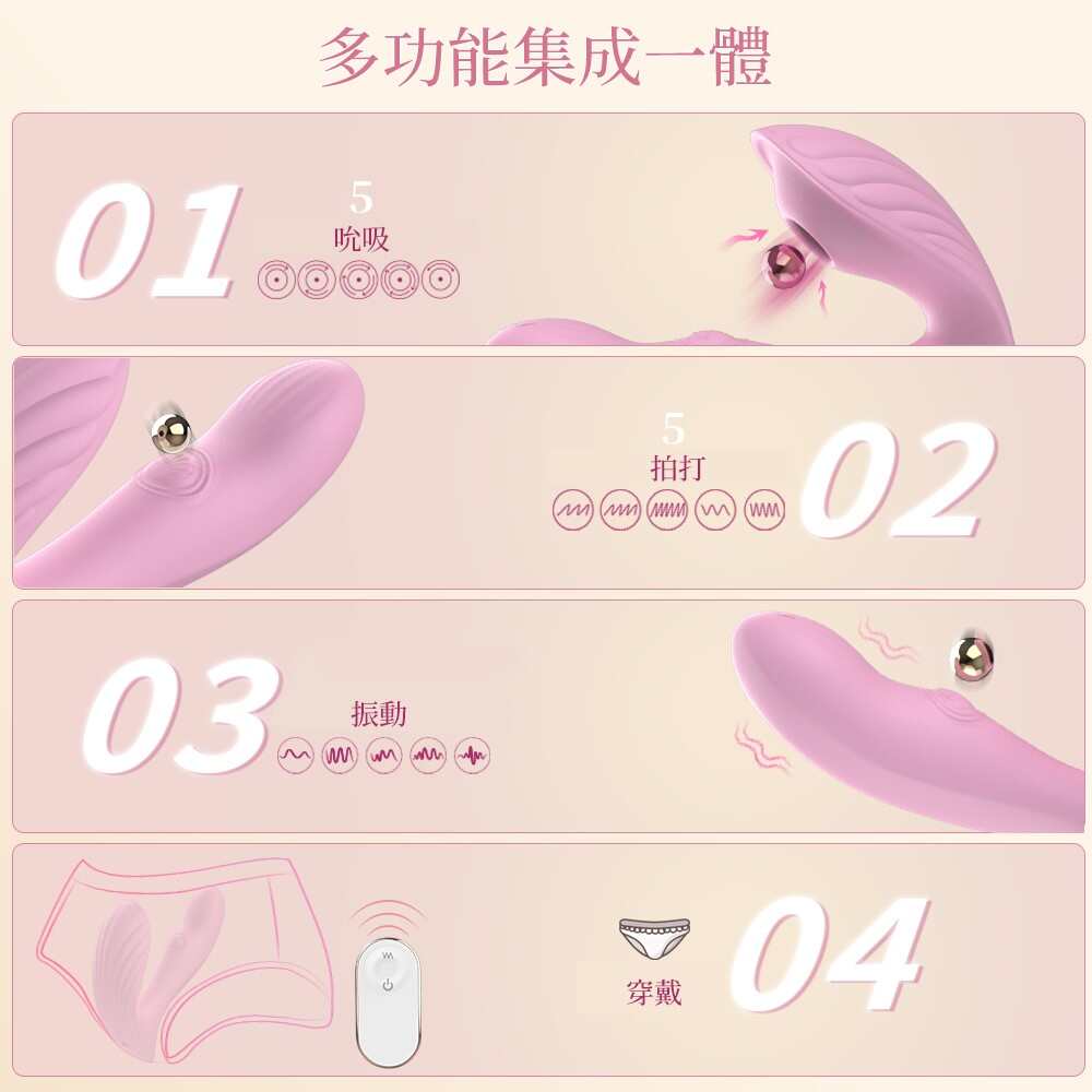 S-HANDE|吸吮+拍打+震動 三合一電動遙控按摩棒 粉色