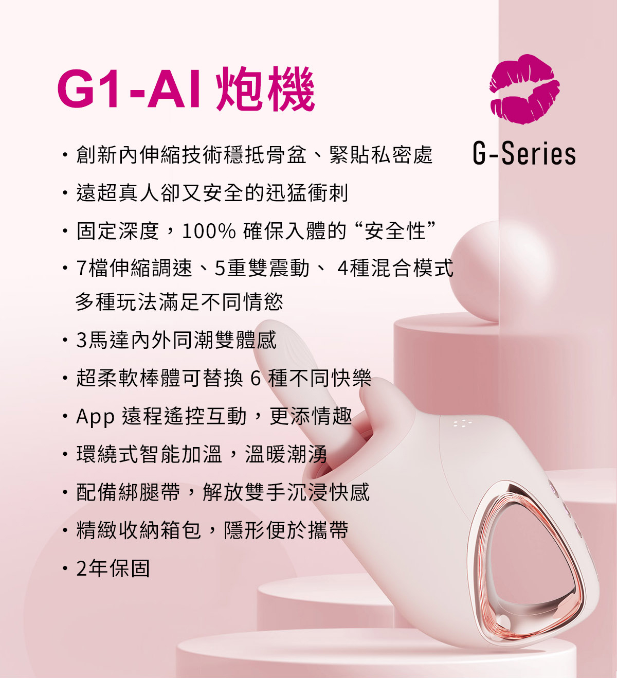 AK|G系列 G1-AI 智能按摩 內縮式擬真 抽插炮機 粉色