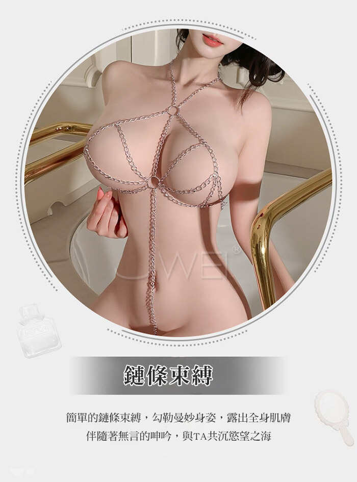 鏈鎖激愛.火辣鏈條鎖胸束縛鈴襠三點一體式金屬鏈衣
