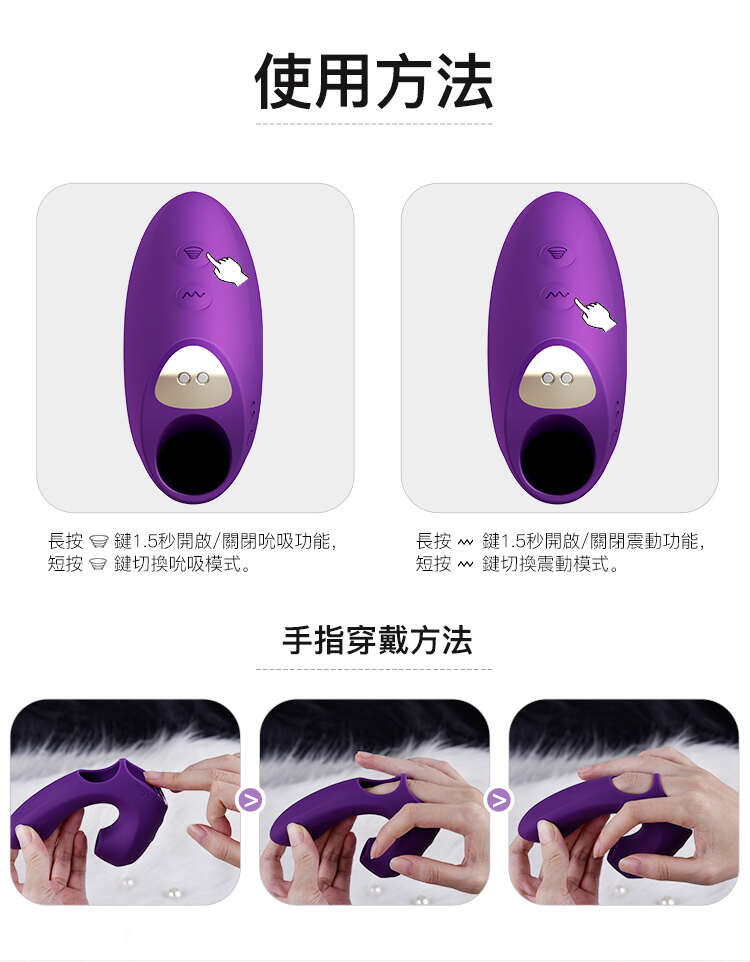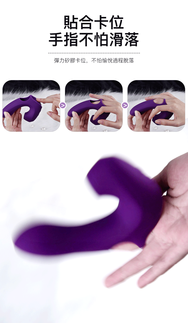 按摩器設計採用彈力矽膠卡位,緊貼手指,在歡愉過程中不易掉落