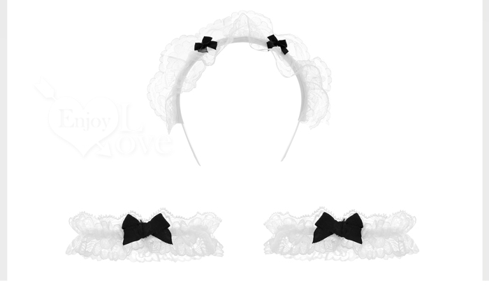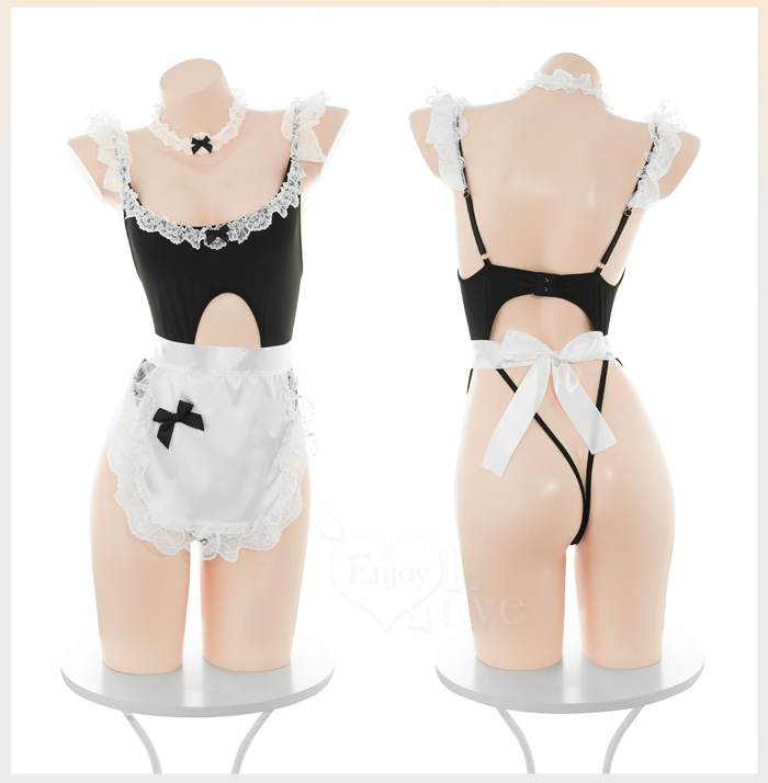 女僕角色扮演服|U領花邊・可調肩帶裸臀連身衣 × 造型圍裙 六件式套裝