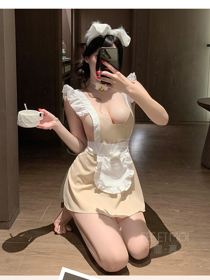 奶心甜寵.小狗甜心美背裙片開衩女僕圍裙制服【頸環+連身裙+T褲】