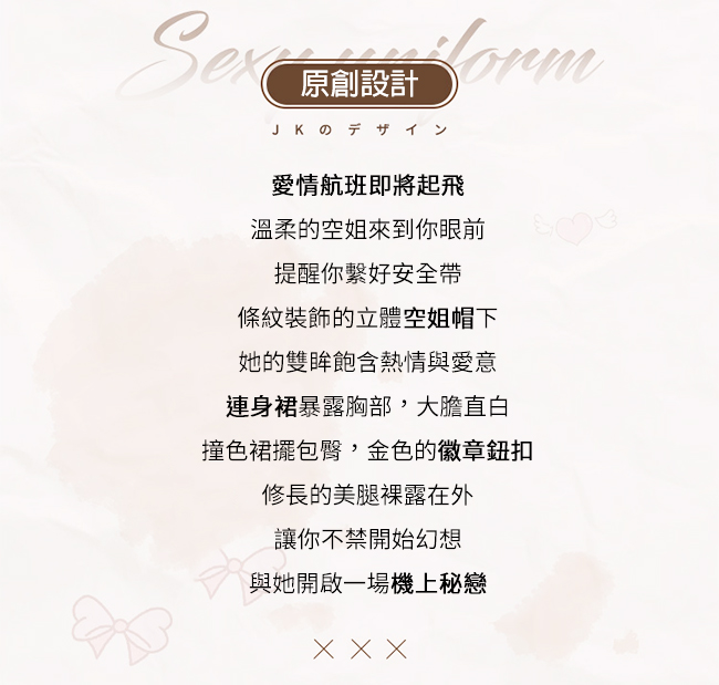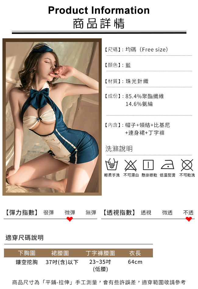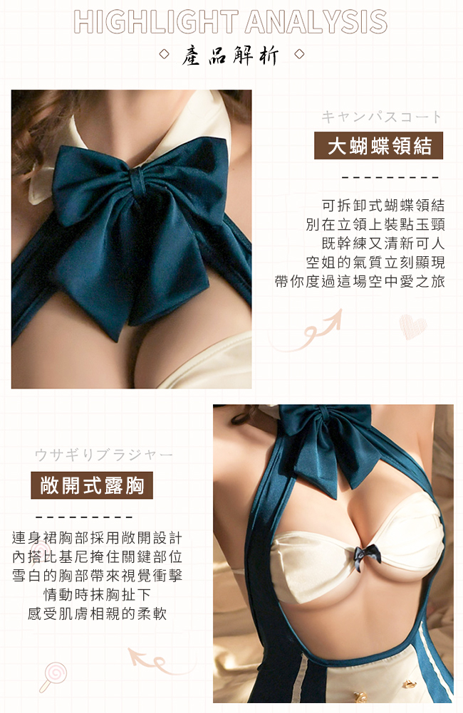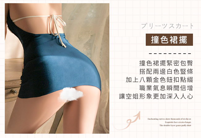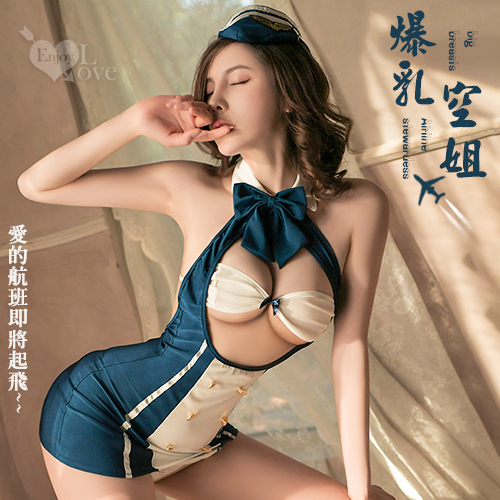 空姐角色扮演服!大蝴蝶領結敞開式露胸金屬釦五件式套裝﹝藍﹞