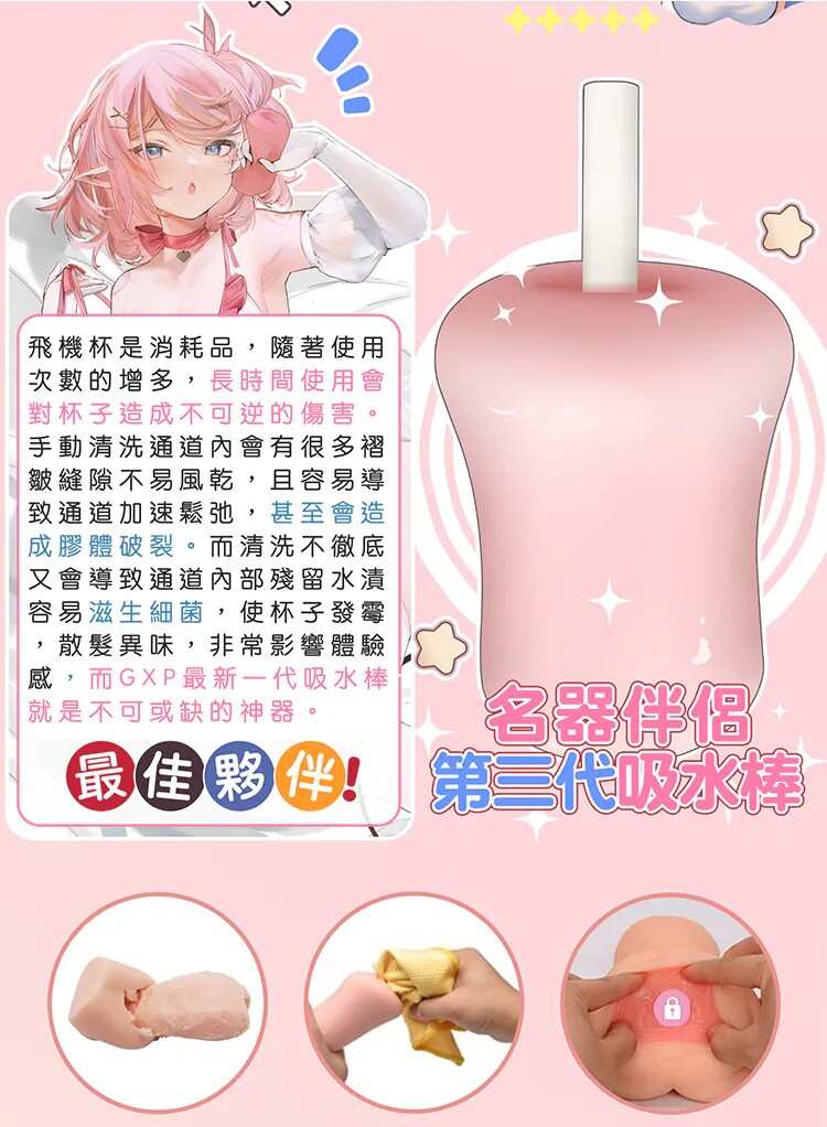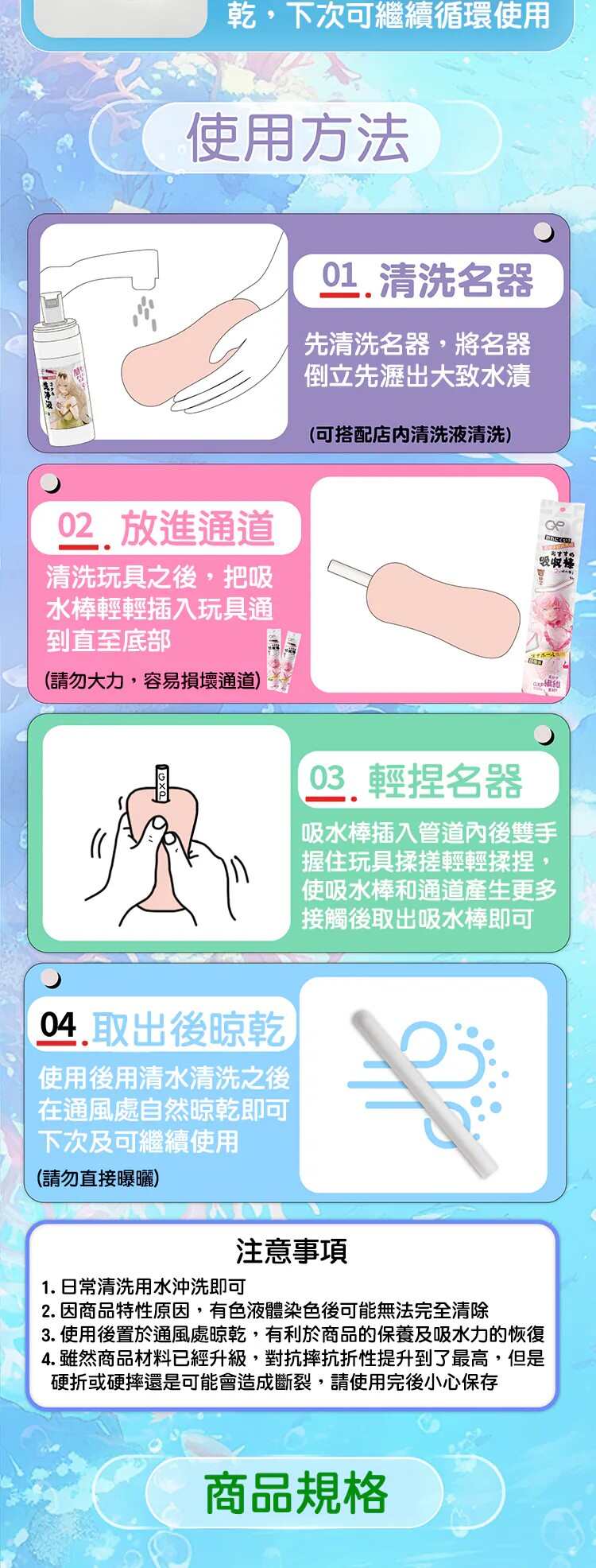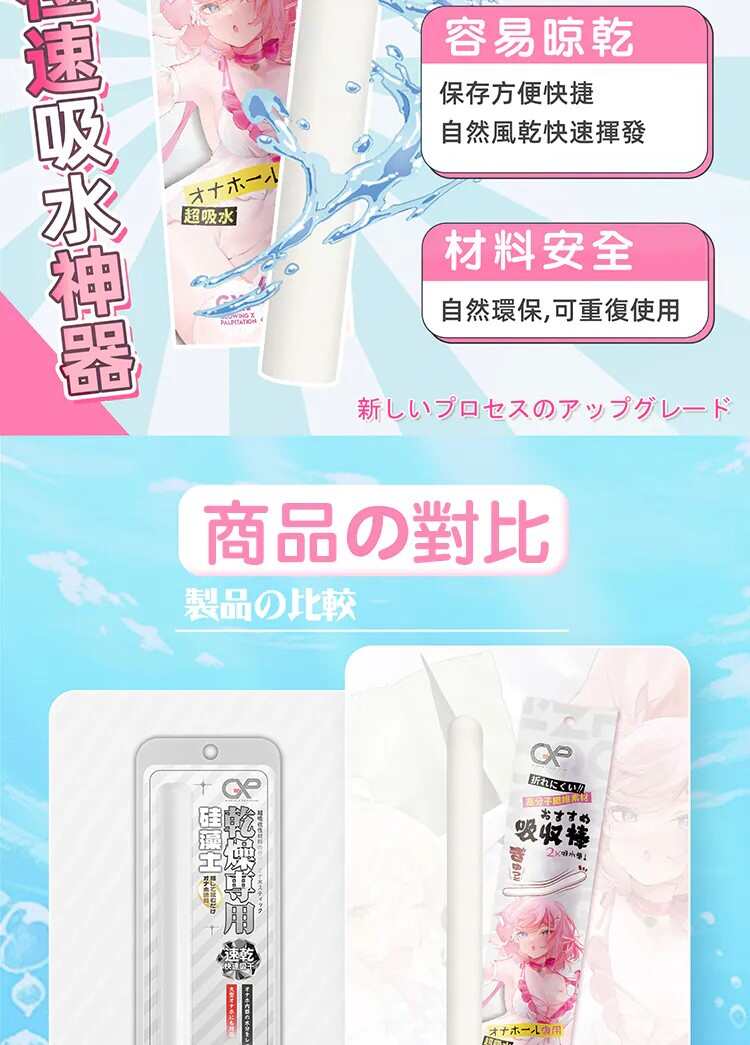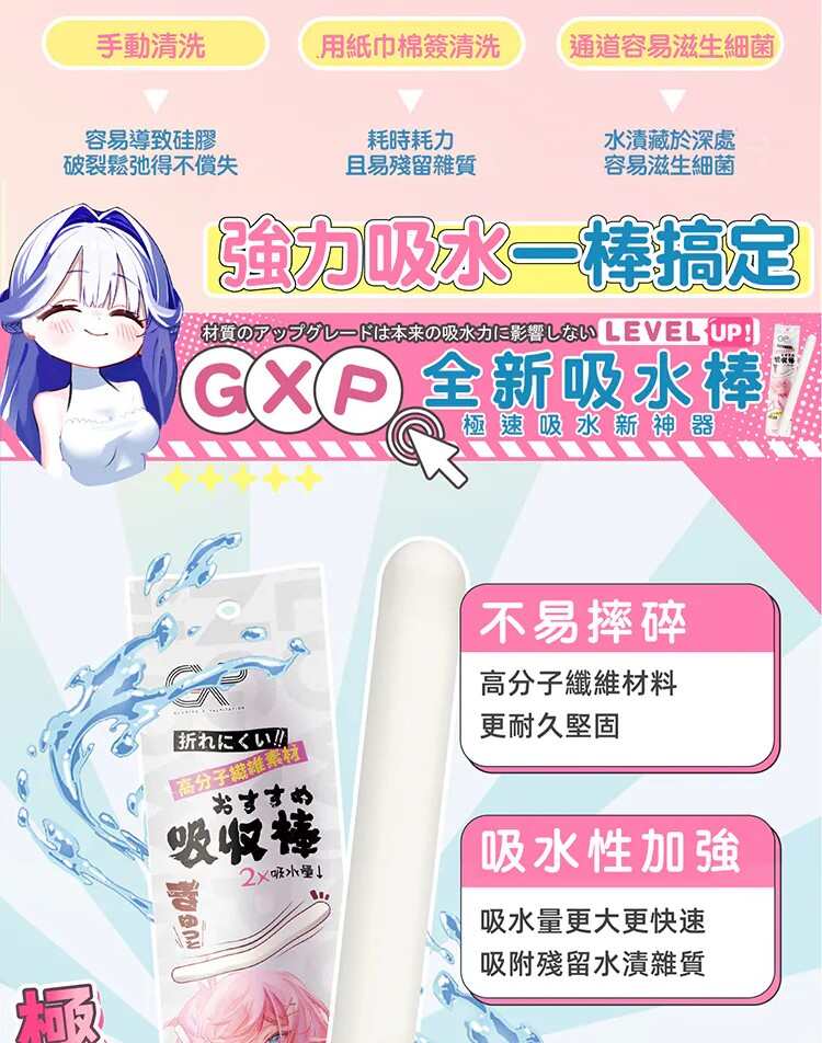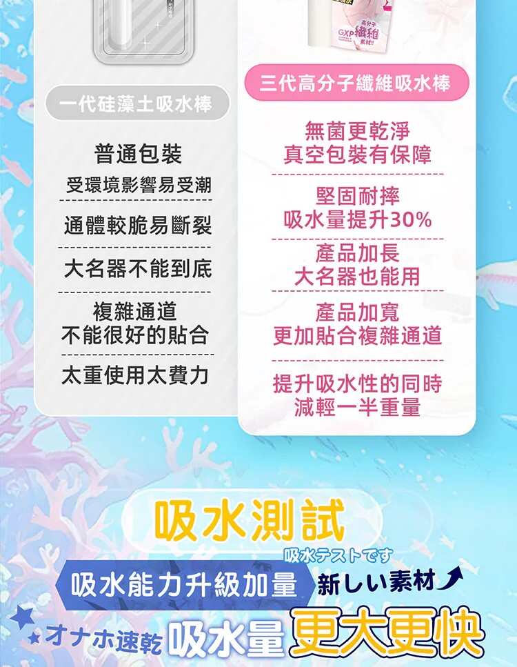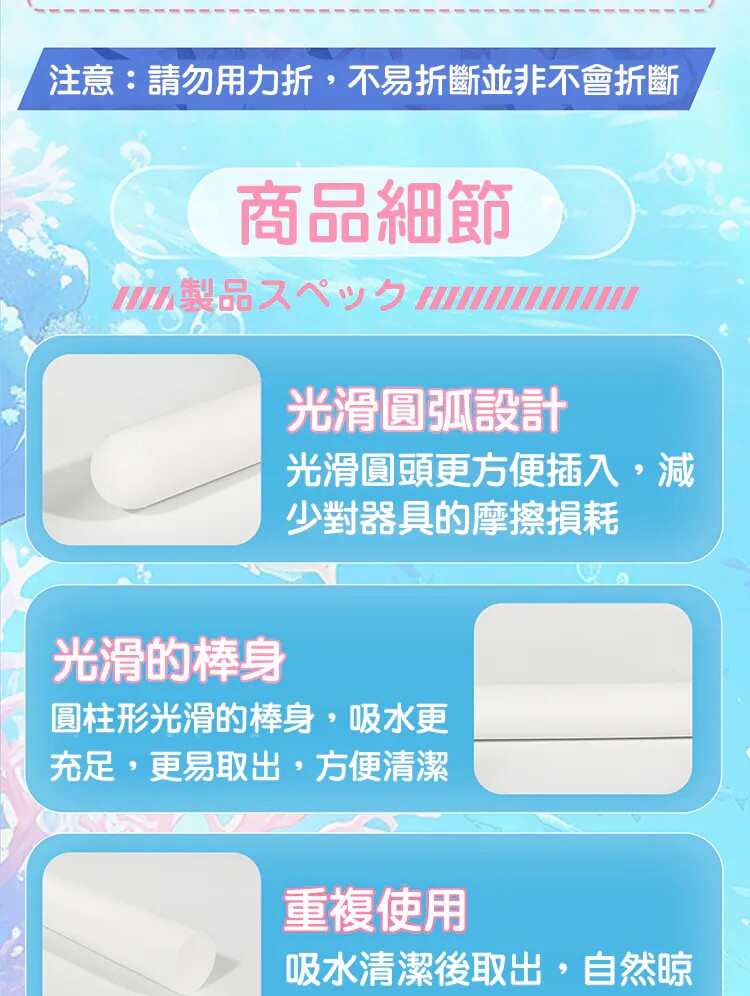 ‼️吸水棒放入自慰套時間單次最長約為1-3分鐘,反覆幾次直至水分吸乾即可,不可長時間放置於自慰套中‼️