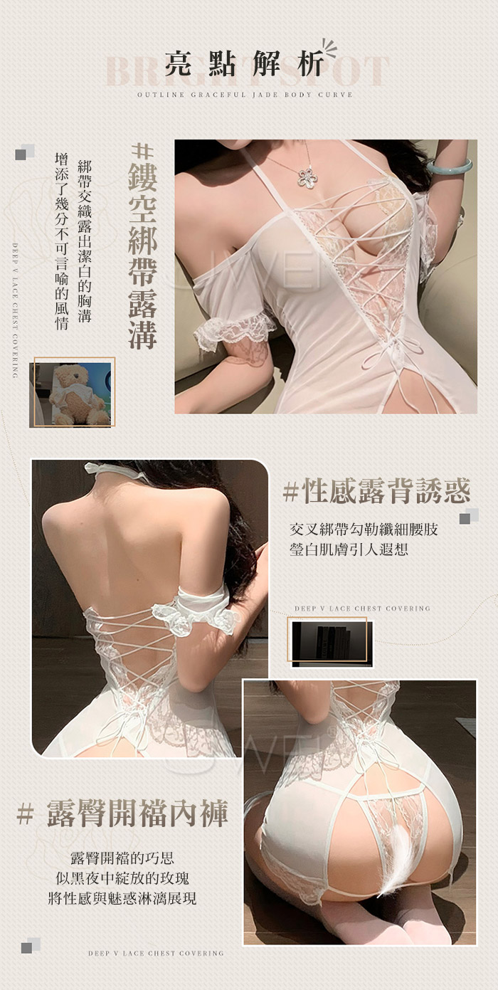 👙 精緻鏤空工藝搭配深V露溝剪裁,展現大膽性感魅力。