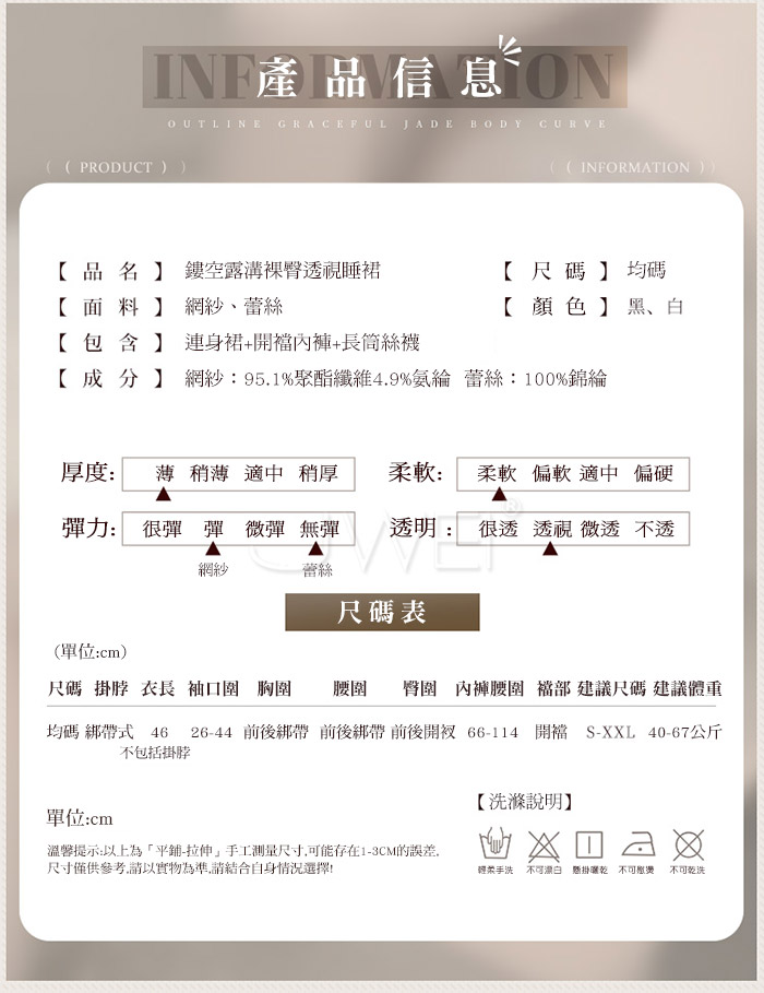 👀 材質輕薄,完美襯托女性曲線,在透視中營造無限遐想。