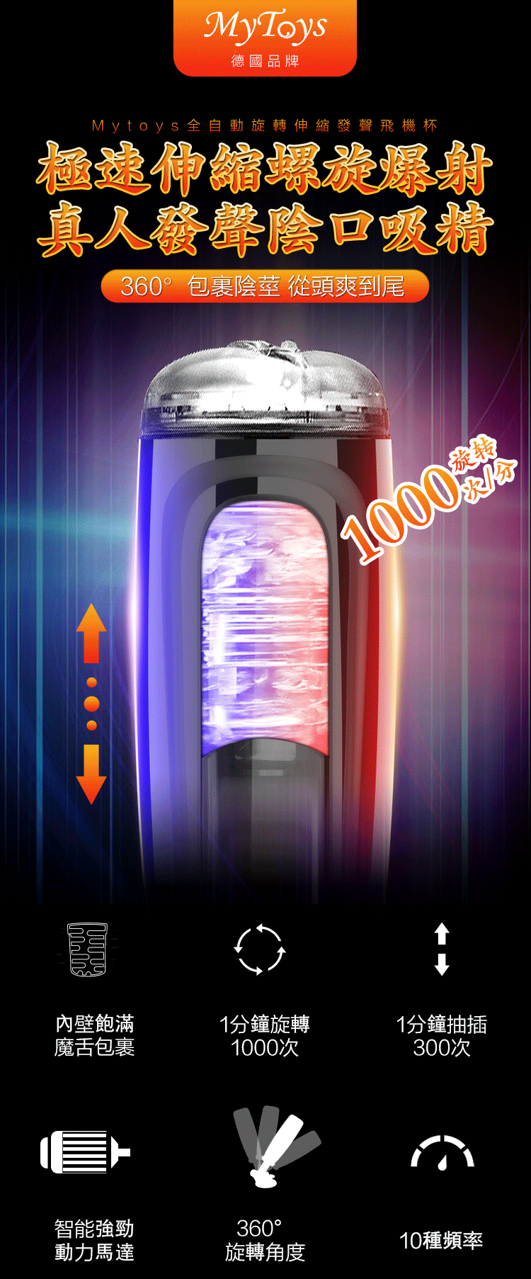 Mytoys|德國 Rocky 自動旋轉伸縮式X三種呻吟 潮爽電動飛機杯